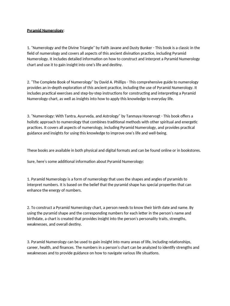 practices. It covers all aspects of numerology, including Pyramid Numerology, and provides practical