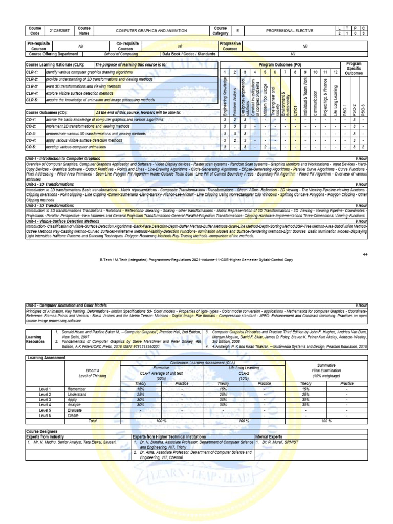 21CSE255T COMPUTER GRAPHICS AND ANIMATION E PROFESSIONAL ELECTIVE