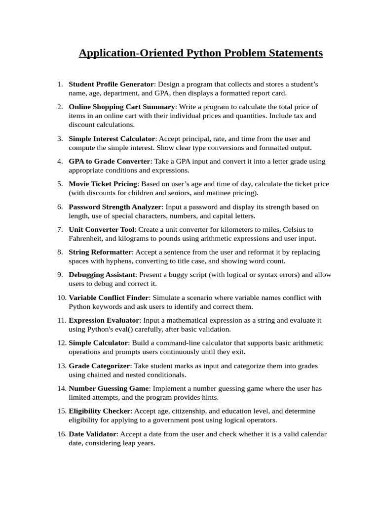 1. Student Profile Generator: Design a program that collects and stores a student’s