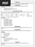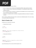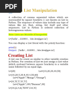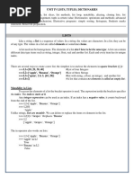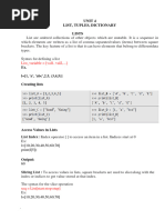 Lists: Creating Lists; Operations on Lists; Built-in Functions on Lists; Implementation of Stacks and Queues using