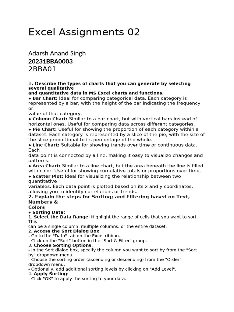 2. Explain the steps for Sorting; and Filtering based on Text,