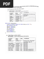 PRODUCTNO VARCHAR2 6 Primary Key/first letter must start with ‘P’
