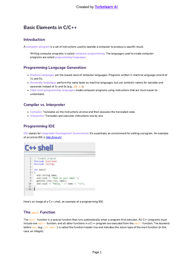Here is an image showing a C++ "Hello World" program in a C++ shell. Note the #include <iostream> which is a directive,