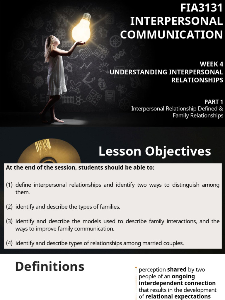 (1) define interpersonal relationships and identify two ways to distinguish among