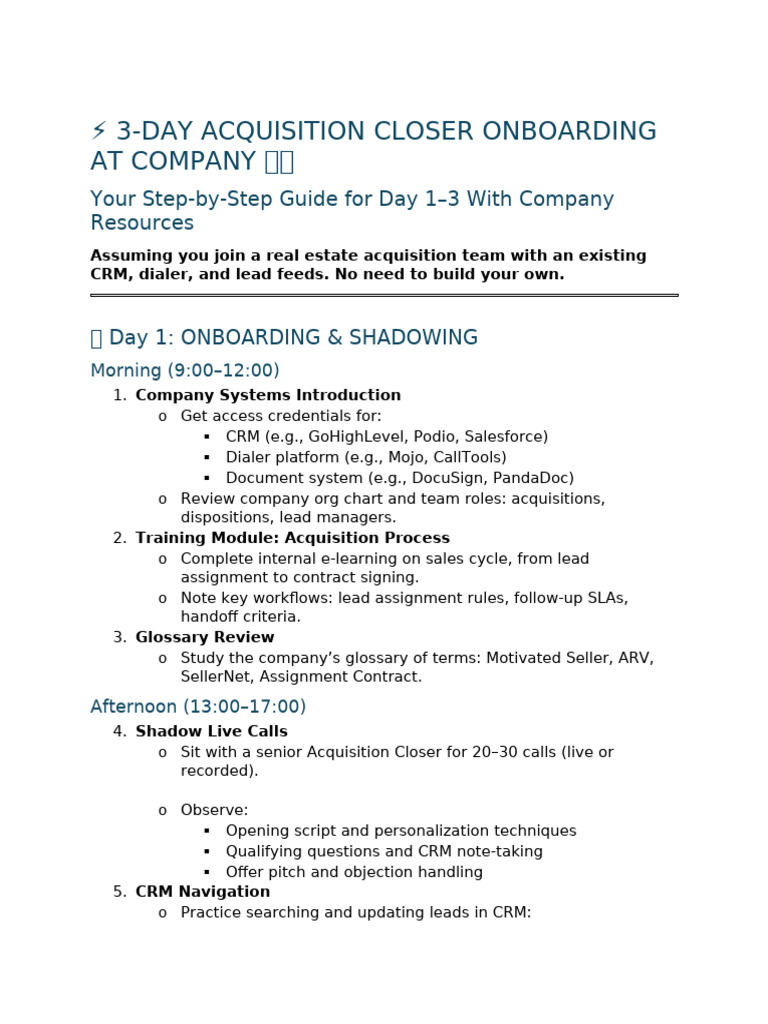 ⚡️3-DAY ACQUISITION CLOSER ONBOARDING