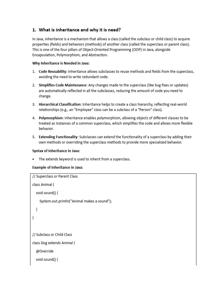 • Single Inheritance: In Java, a class can inherit from only one superclass (single inheritance),