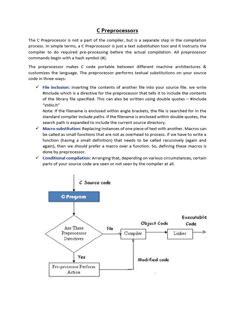 process. In simple terms, a C Preprocessor is just a text substitution tool and it instructs the