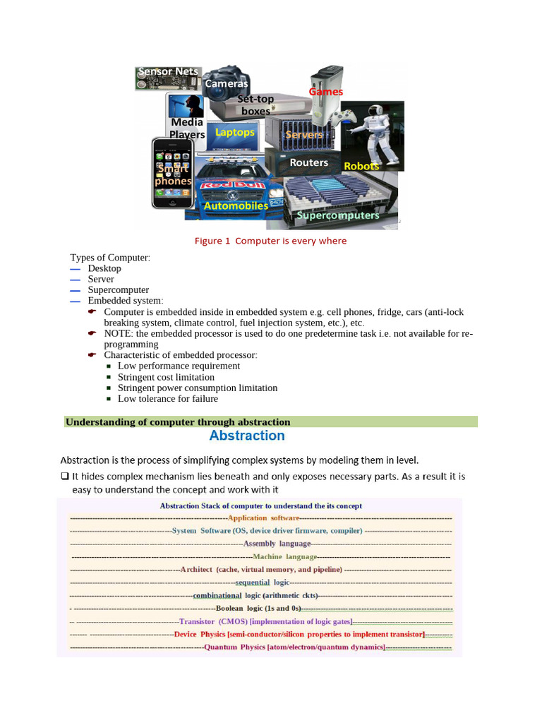 Computer is embedded inside in embedded system e.g. cell phones, fridge, cars (anti-lock