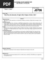 project titled 'Study of the Efficiency of Solar Cells Under Different Light Conditions' under my supervision.