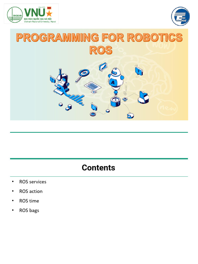 • Suited for logging and recording datasets for later > rosbag info name_bag.bag
