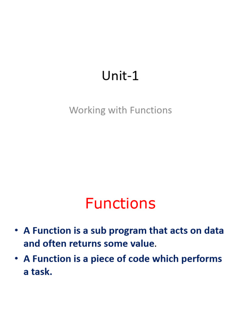 • A Function is a sub program that acts on data