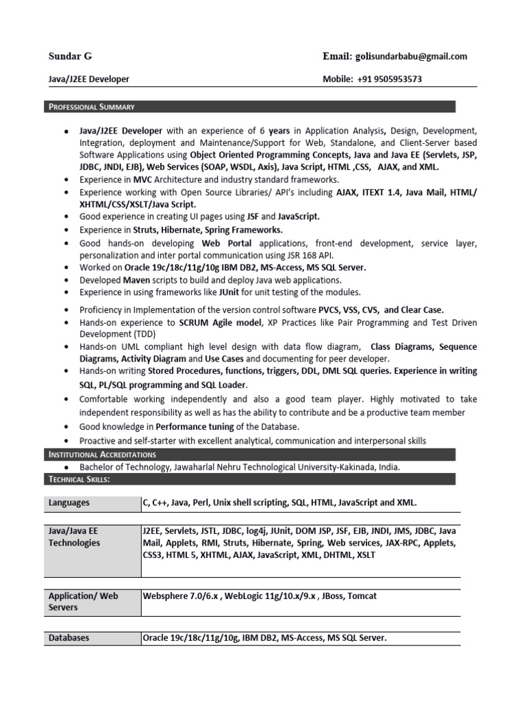 Java/J2EE Developer with an experience of 6 years in Application Analysis, Design, Development,