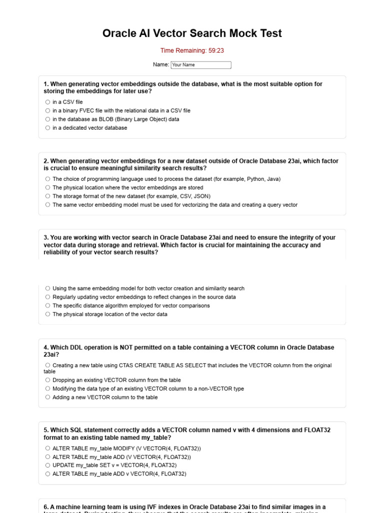 Oracle AI Vector Search Mock Test