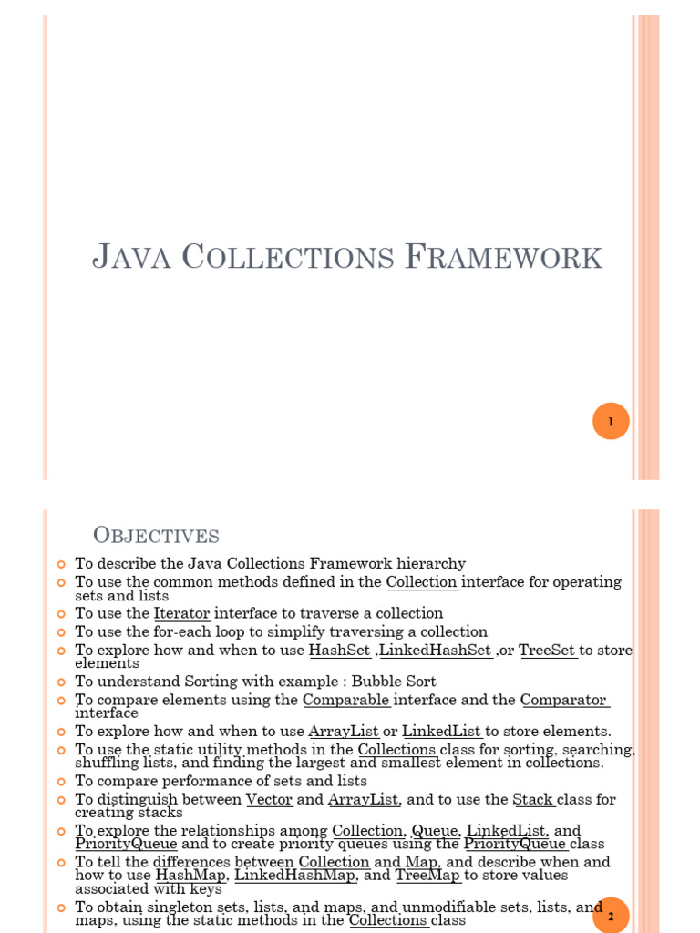 ¢ To distinguish between Vector and ArrayList, and to use the Stack class for