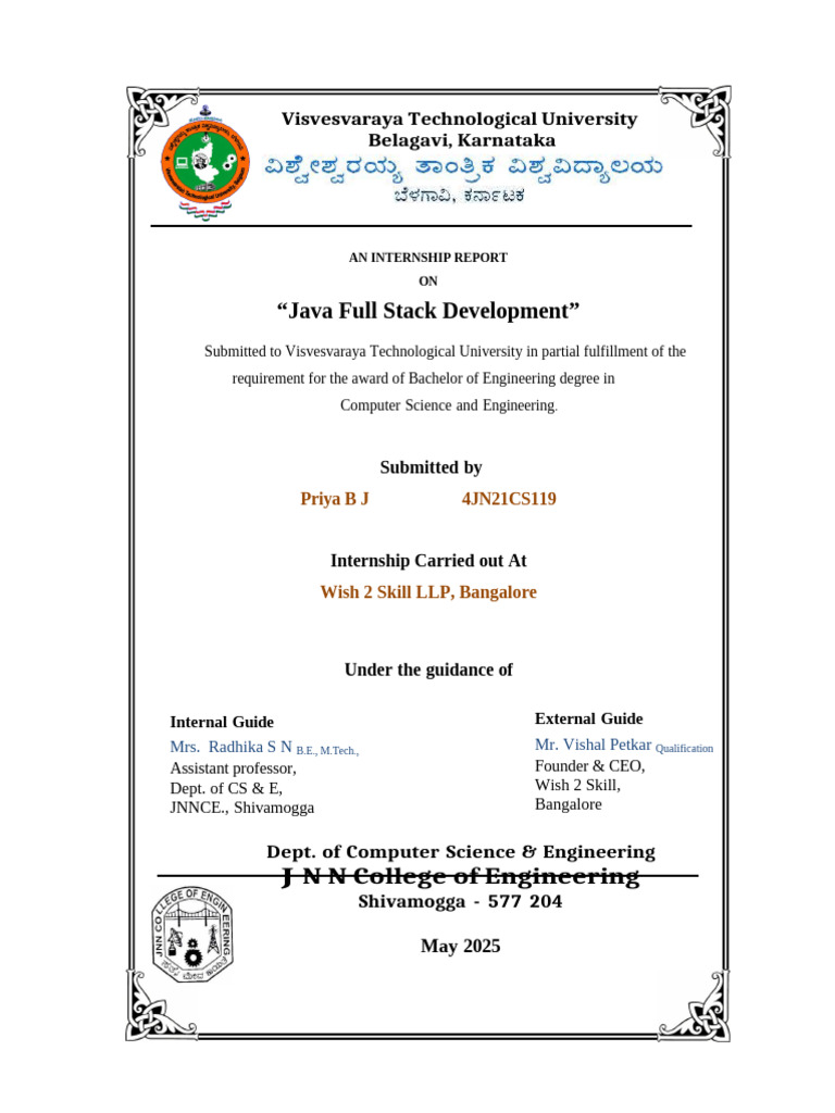 I would like to thank my respected internship co-ordinators Mrs. Radhika S K