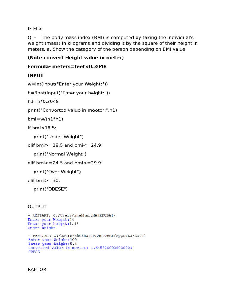 Q1- The body mass index (BMI) is computed by taking the individual's