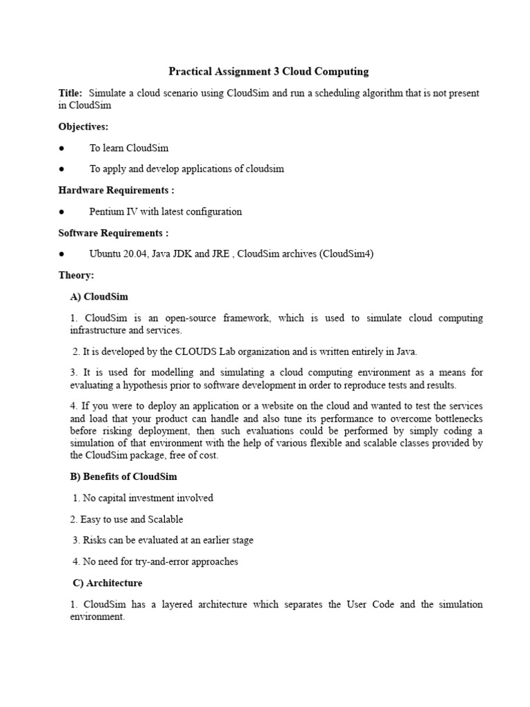 Title: Simulate a cloud scenario using CloudSim and run a scheduling algorithm that is not present