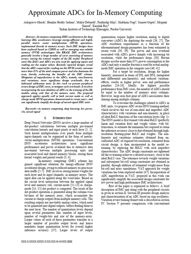 Keywords—in memory computing, deep learning, low power, which involves the use of non-ideal and imperfect ADC