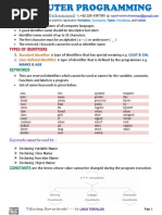 1. Define keywords, identifiers, variables, and constants in the context of programming.