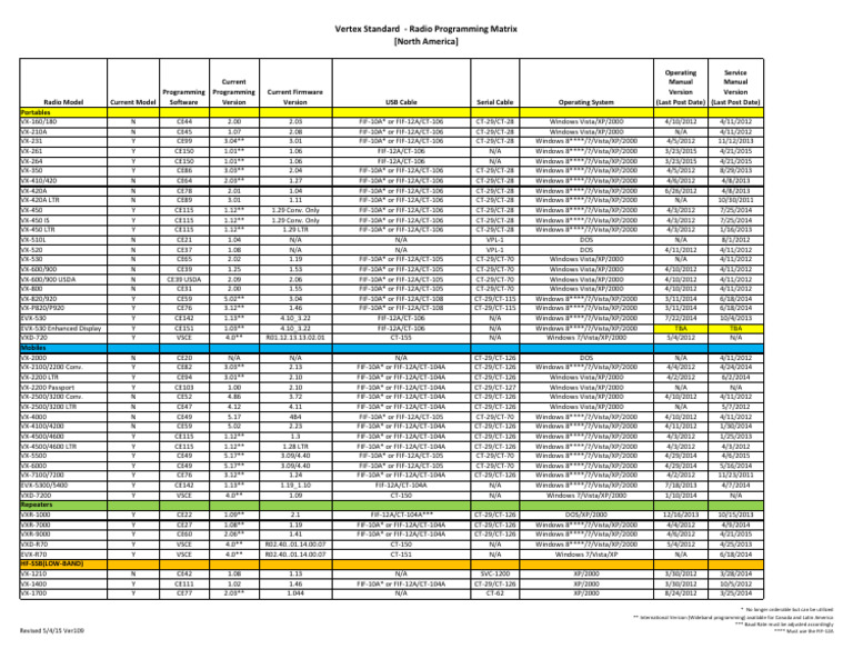 Radio Model Current Model Software Version Version USB Cable Serial Cable Operating System (Last Post Date) (Last Post Date)