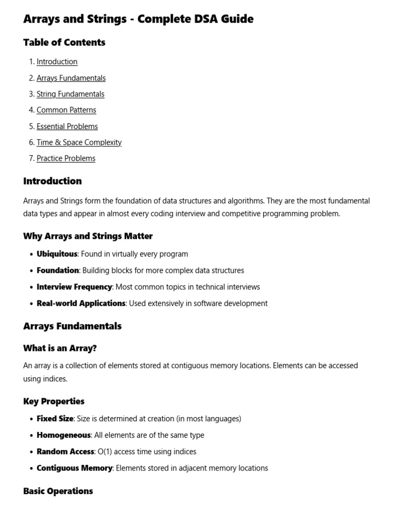 Arrays and Strings are fundamental data structures that form the basis for more advanced topics.