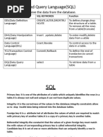 DDL (Data Definition Defines database CREATE, ALTER, DROP,