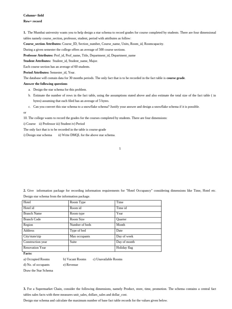 1. The Mumbai university wants you to help design a star schema to record grades for course completed by students. There are four dimensional