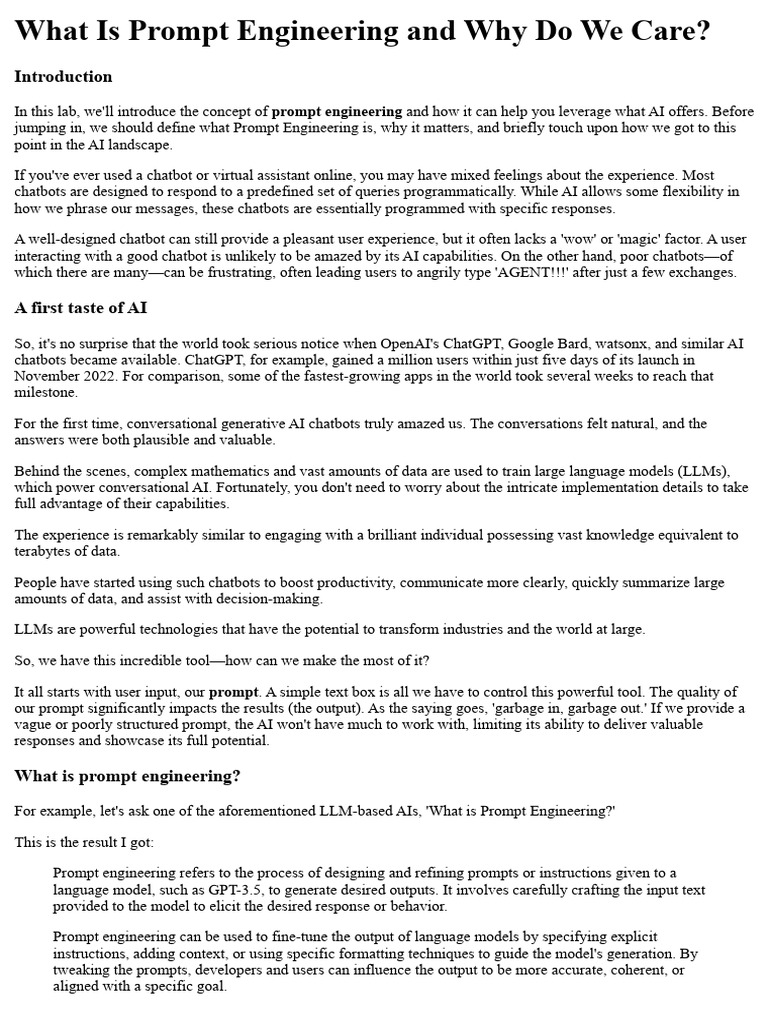 In this lab, we'll introduce the concept of prompt engineering and how it can help you leverage what AI offers. Before