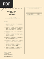 「閱讀材料」乃本試卷設問的依據,共有語體篇章一篇及文言篇章一篇。 考生得分