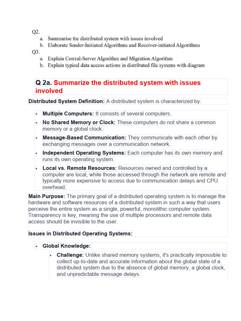 • Solutions/Approaches: Logical clocks (like Lamport's and Vector