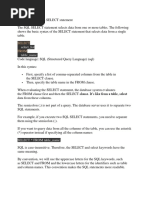 ● SELECT: This clause specifies the columns (or fields) you wish to retrieve from
