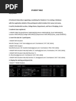 insert into Student values (2. "Soumya', 'Patna', 9836789245, 'soumya.b@gmail.com', '1998-03-25',