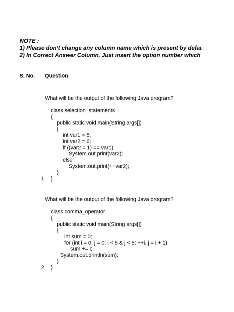 2) In Correct Answer Column, Just insert the option number which is correct. (F