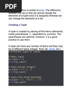 A tuple in Python is similar to a list. The difference between the two is that we cannot change the