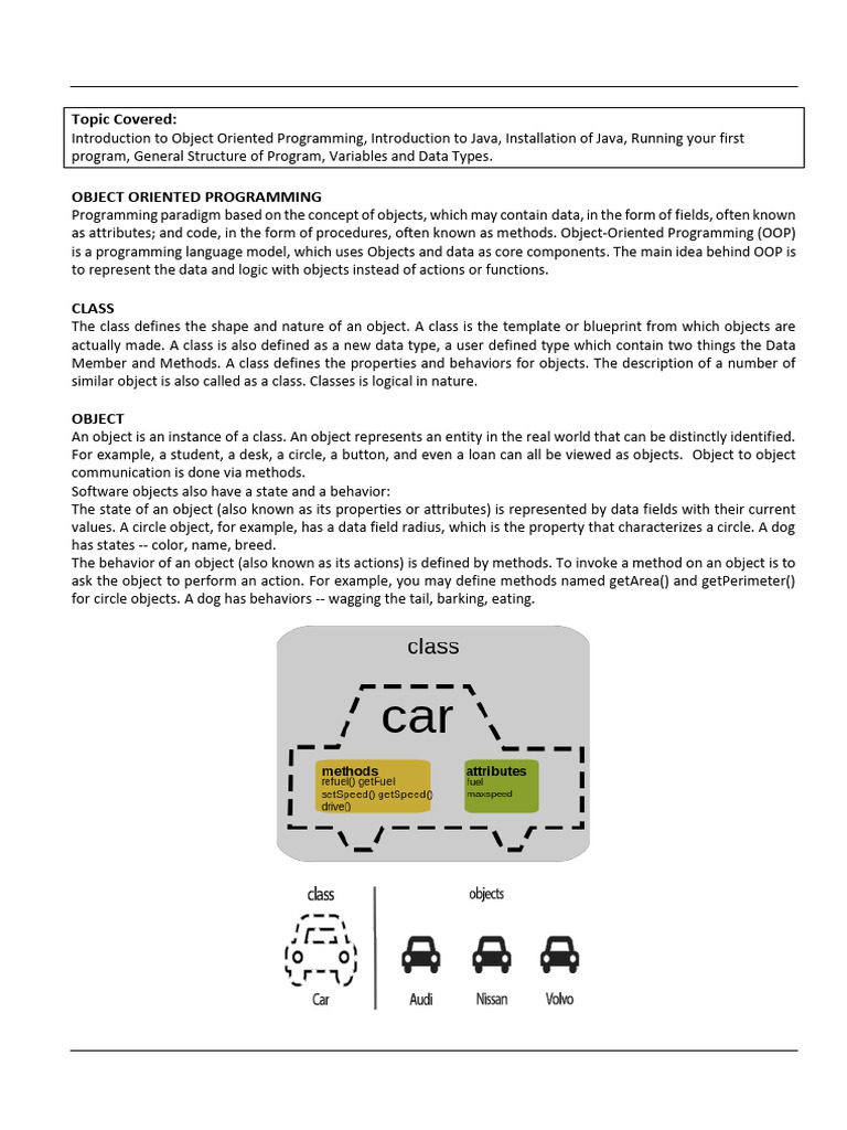 Introduction to Object Oriented Programming, Introduction to Java, Installation of Java, Running your first