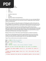 This document provides a comprehensive introduction to Python programming, covering its history, syntax, and fundamental concepts such as data types, operators, variables, collections (lists, tuples, dictionaries, and sets), and basic operations. It includes practical examples and explanations of how to use these features effectively. The content is structured to facilitate quick learning, making it suitable for beginners looking to grasp Python in a short amount of time.