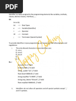 Identifier: A name in java program is called identifier. It may be class name, method name, variable