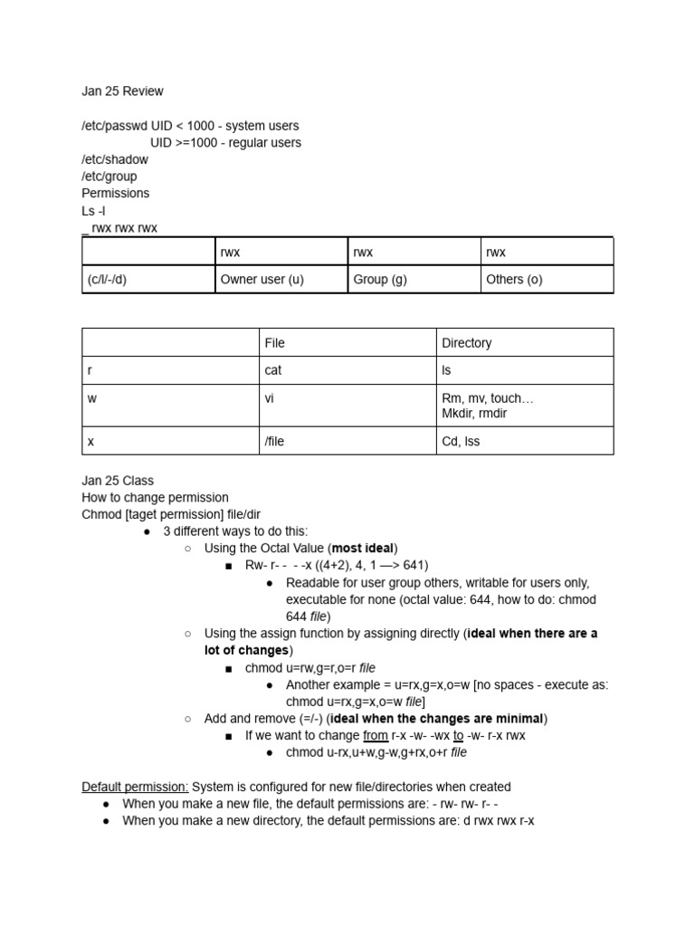 ● When you make a new file, the default permissions are: - rw- rw- r- -