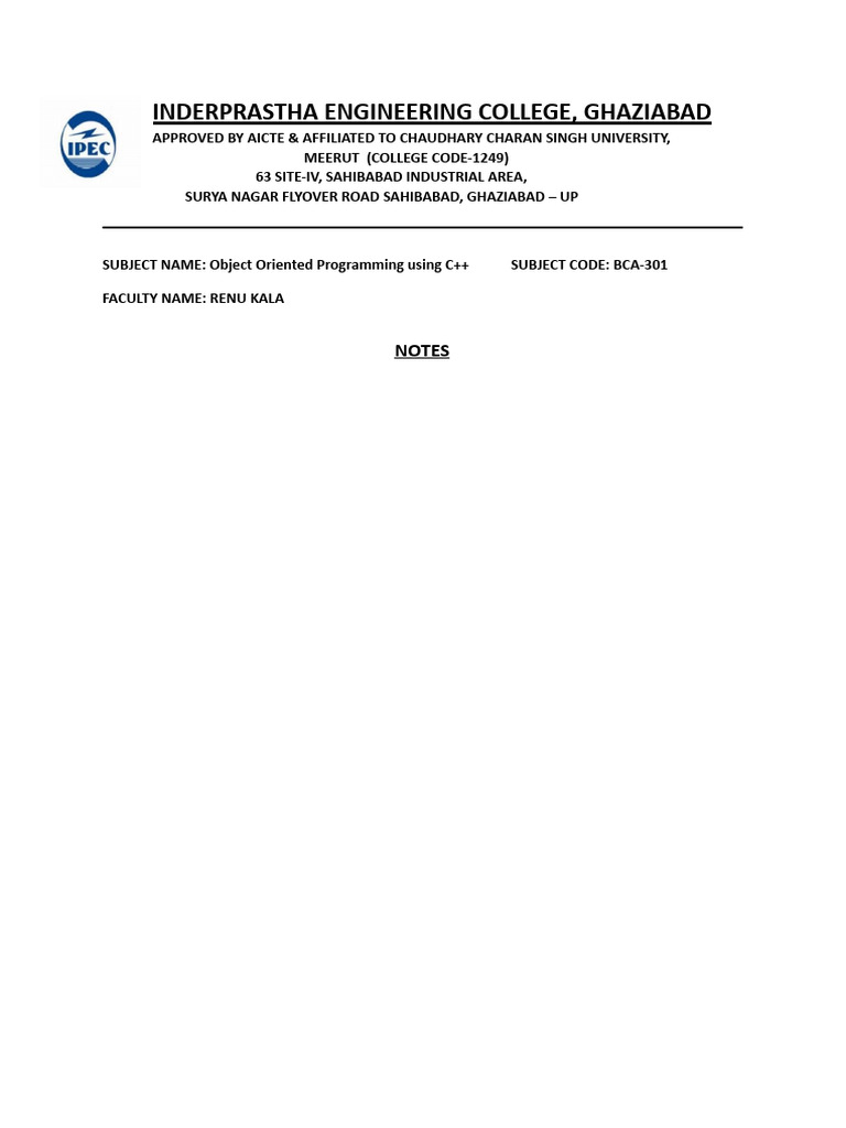 SUBJECT NAME: Object Oriented Programming using C++ SUBJECT CODE: BCA-301