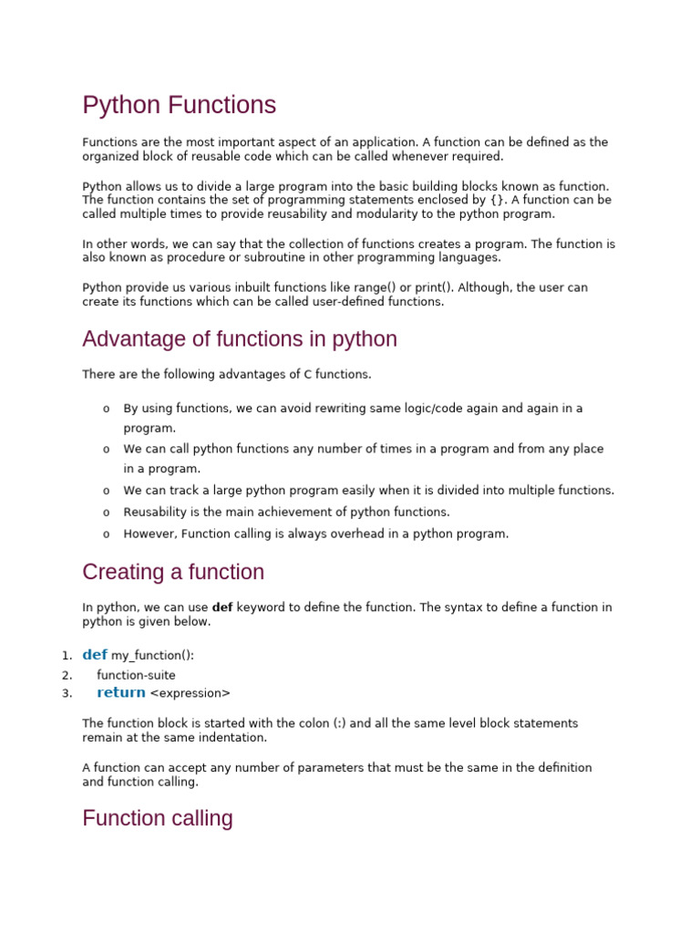 interpreter gives an error. Once the function is defined, we can call it from another function