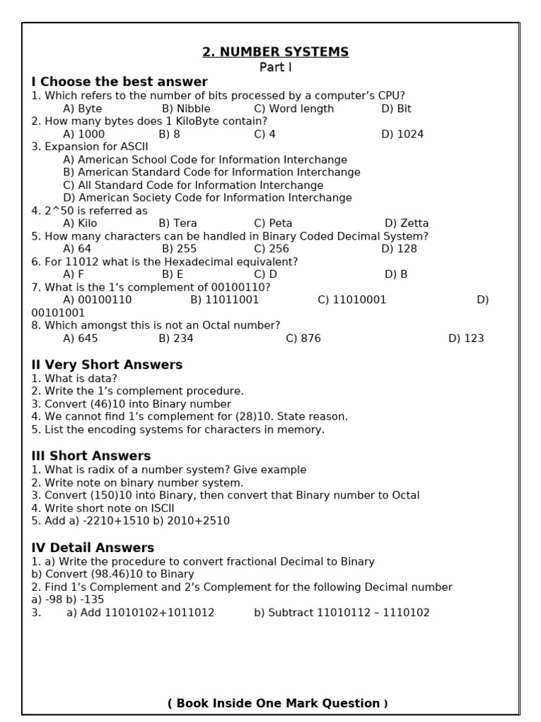 ( Book Inside One Mark Question )