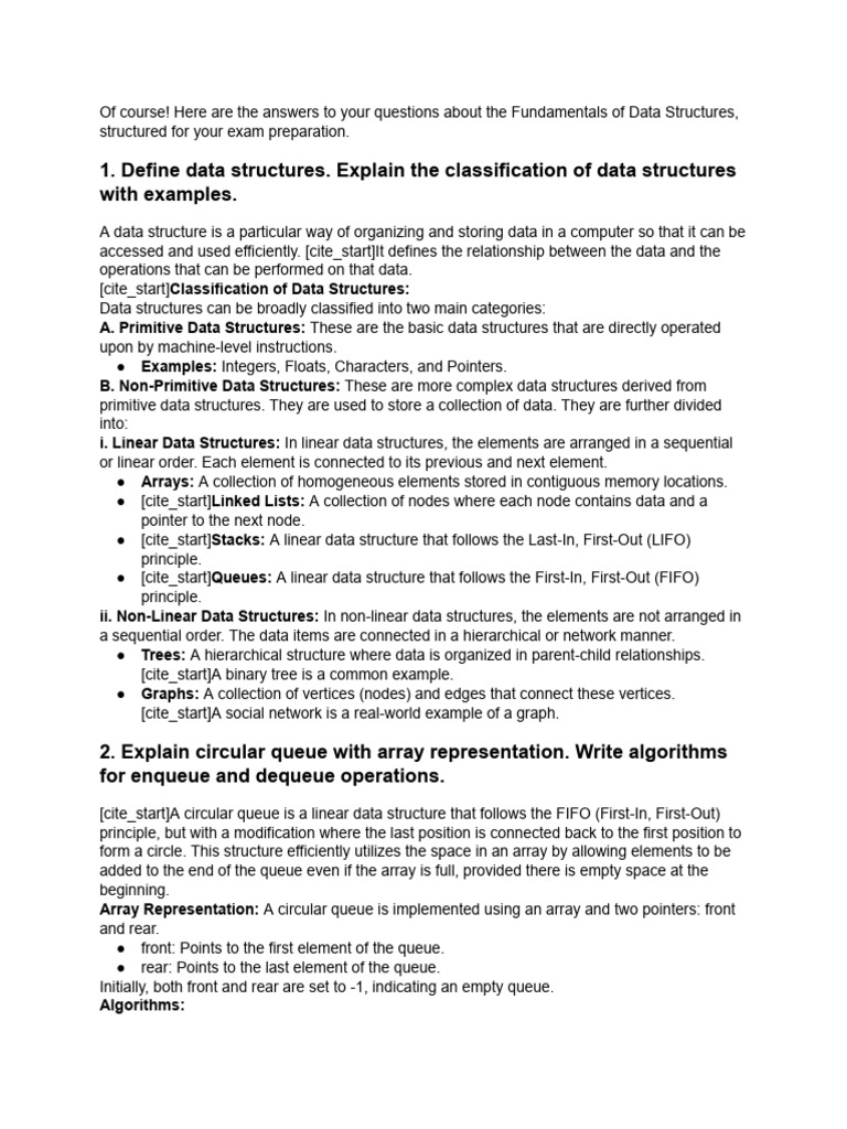 Here are the answers to your questions about the Fundamentals of Data Structures,