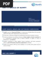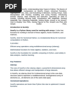 NumPy arrays (ndarrays) are the backbone of the library. This section covers how to