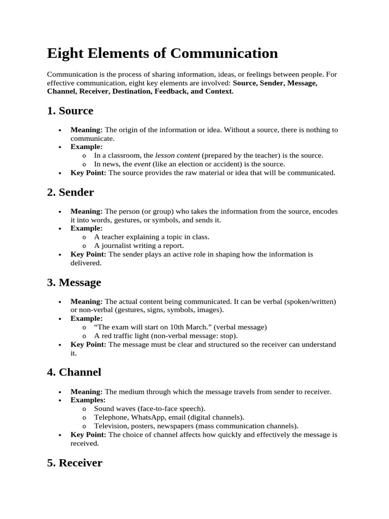 effective communication, eight key elements are involved: Source, Sender, Message,