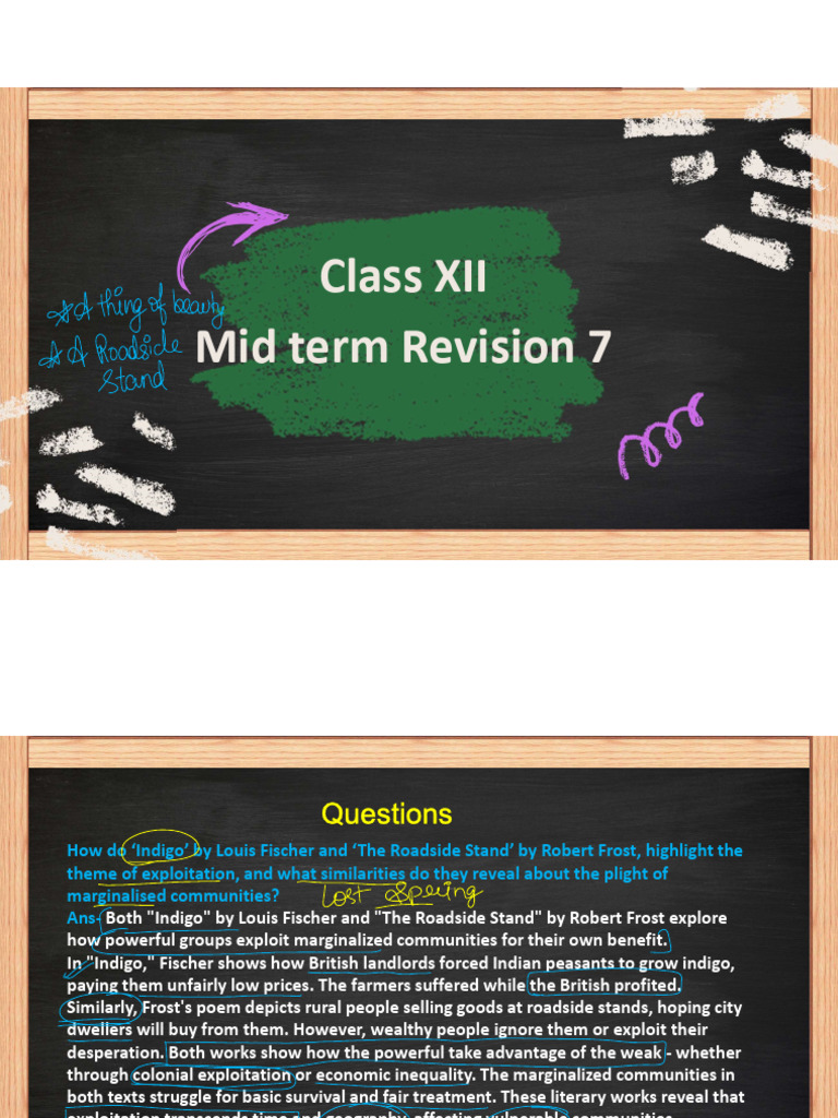 Ans- Both "Indigo" by Louis Fischer and "The Roadside Stand" by Robert Frost explore