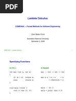 The rst reduction, substituting 10 for x , now returns a function which subtracts its argument from 10; here y would be substituted by 3 in the next reduction. 10 3 = 7 An argument may well be another function. The expression: f .( y.f y) is a function that applies any given function f to any given argument y, for instance given the function x .x + 1 for f and the number 7 for y ( f .( y.f y)) ( x .x + 1) 7 ( y.( x .x + 1) y) 7 ( x .x + 1) 7 7 + 1 = 8