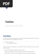 The function tmean calls two standard functions, quantile and mean. Once tmean is created it can be called from any other function. If you write a short function, a one-liner or two-liner, you can type the function directly in the console window. If you write longer functions, it is more convenient to use a script le. Type the function denition in a script le and run the script le. Note that when you run a script le with a function denition, you will only dene the function (you will create a new object). To actually run it, you will need to call the function with the necessary arguments. Saving your function in a script le You can use your favourite text editor to create or edit functions. Use the function source to evaluate expressions from a le. Suppose tmean.R is a text le, saved on your hard disk, containing the function denition of tmean(). In this example we use the function dump() to export the tmean() to a text le.