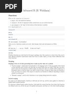 The function sinPlot now accepts any argument that can be passed to the plot() function (such as col(), xlab(), etc.) without needing to specify those arguments in the header of sinPlot. Local variables Assignments of variables inside a function are local, unless you explicitly use a global assignment (the "-" construction or the assign function). This means a normal assignment within a function will not overwrite objects outside the function. An object created within a function will be lost when the function has nished. Only if the last line of the function denition is an assignment, then the result of that assignment will be returned by the function. Note that it is not recommended to use global variables in any R code. In the next example an object x will be dened with value zero. Inside the function functionx, xis dened with value 3. Executing the function functionx will not affect the value of the global variable x.