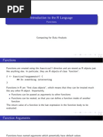 In this section we explain the difference between required and optional arguments, explain the meaning of the ... argument, introduce local variables, and show the different options for returning an object from a function. Required and optional arguments When calling functions in R, the syntax of the function denition determines whether argument values are required or optional. With optional arguments, the specication of the arguments in the function header is: