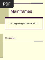 A data processing system employed mainly in largeorganizations for various applications, including bulk data processing, process control, industry and consumerstatistics, enterprise resource planning, and financial transaction processing. Mainframes use proprietary operating systems, most of which are based on Unix, and a growing number on Linux. Over the years they have evolved from being room-sized to networked configurations of workstations and servers that are an extremely competitive and cost effective platformsfor e-commerce development and hosting. Mainframes are so called because the earliest ones were housed in largemetal frames.